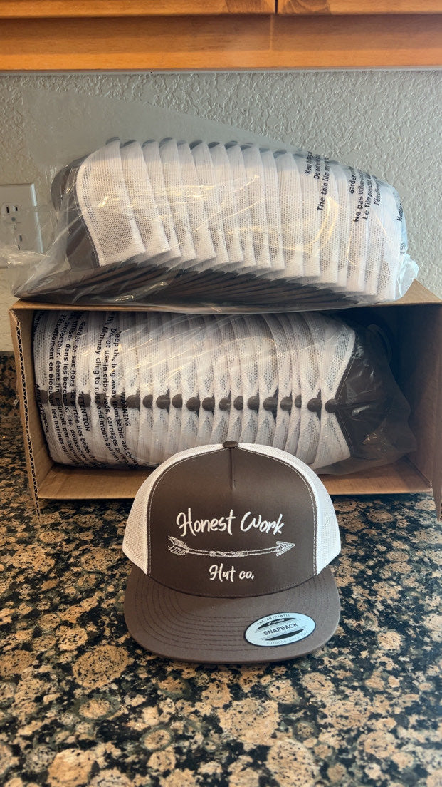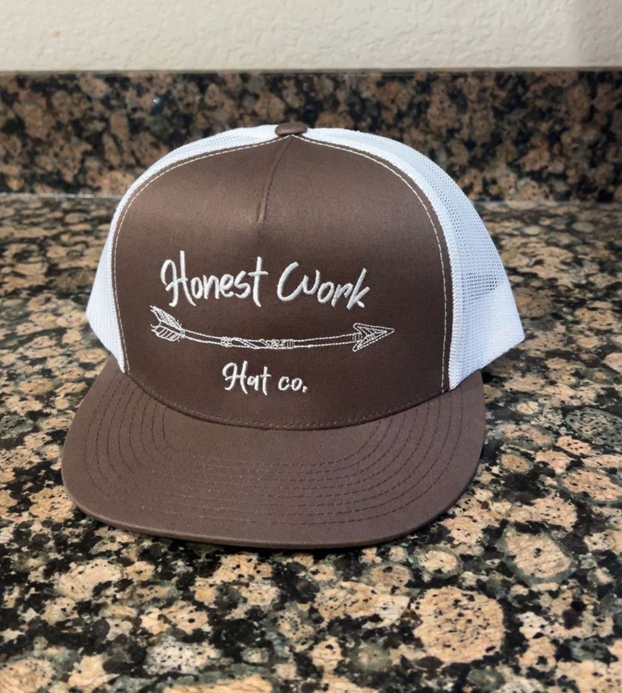 Youpoong Classic Brown & white Snapback with Honest Work Hat Co & Arrow on the Front
